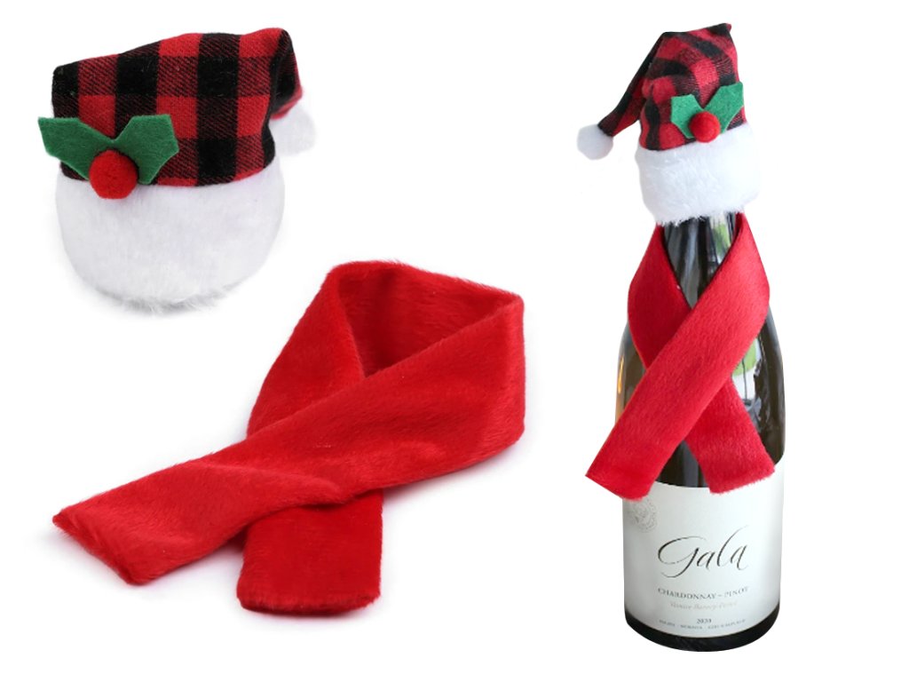 Malá vánoční čepice s šálou originálně ozdobí například láhve piva či vína nebo s ní můžete dotvořit postavičky.