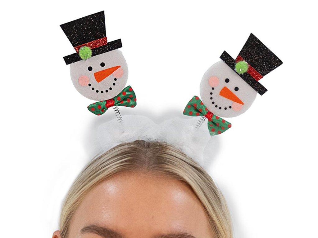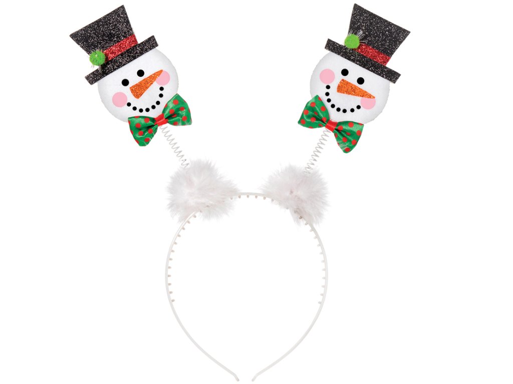 Party čelenka s motivem sněhuláčků. Humorná čelenka bude neodolatelným lákadlem firemního večírku, nebo Vánoční party. Skvěle se hodí do vánočního foto koutku, nebo jako doplněk k vánočnímu kostýmu. Balení 1 ks.