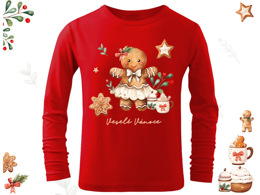 Vánoční tričko s perníčky, dlouhý rukáv.