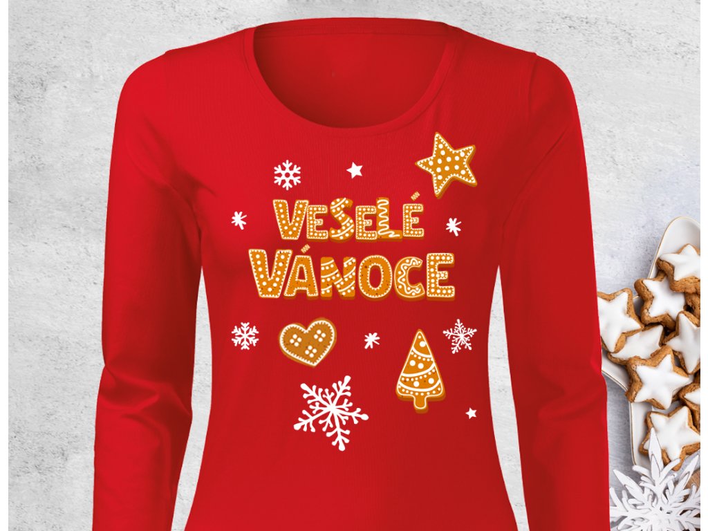 Perníčkový nápis - Dámské triko červené-DLOUHÝ RUKÁV