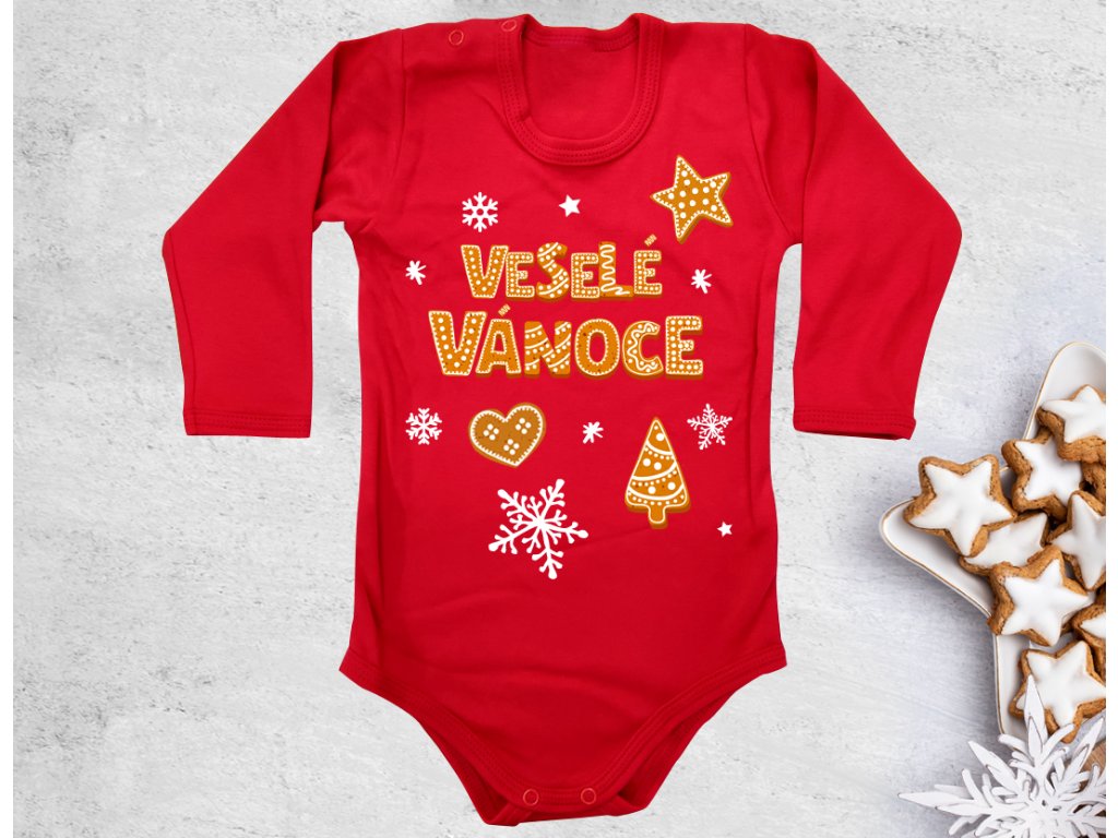 Dětské body, dlouhý rukáv s vánočním motivem.