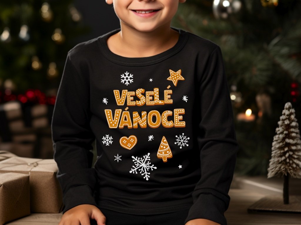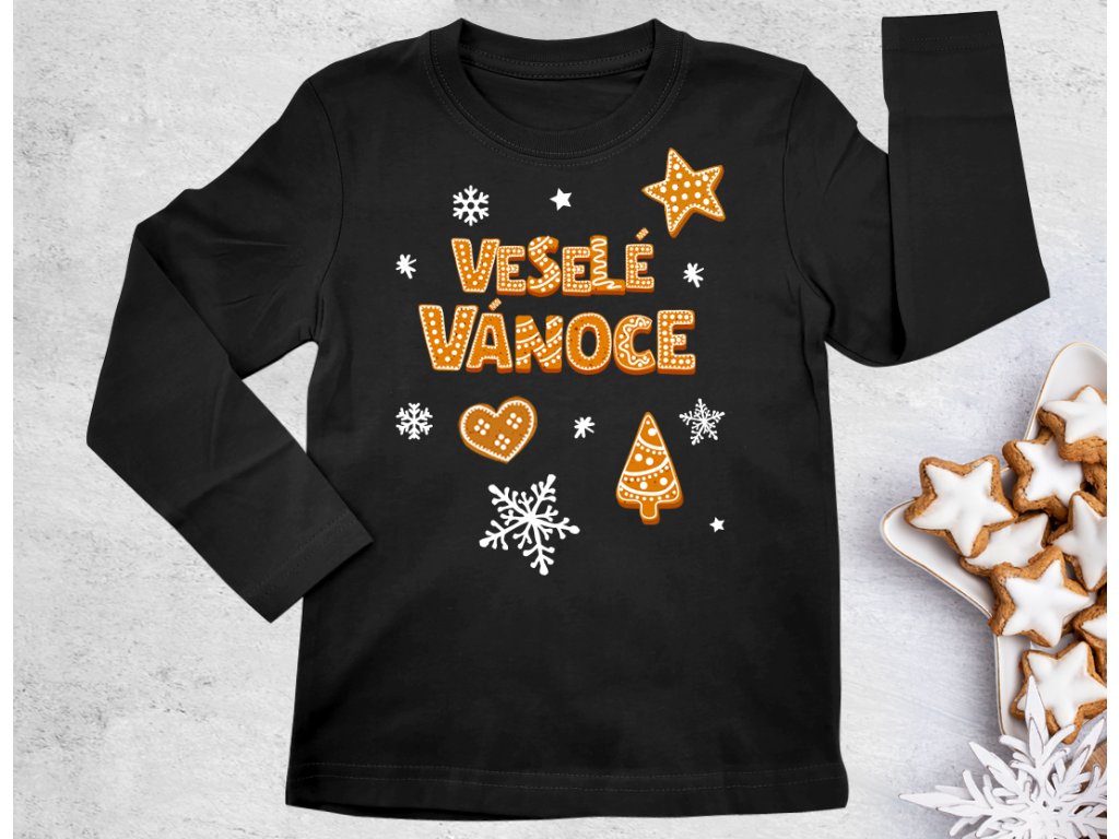 Perníčkový nápis - Dětské triko ČERNÉ - DLOUHÝ RUKÁV