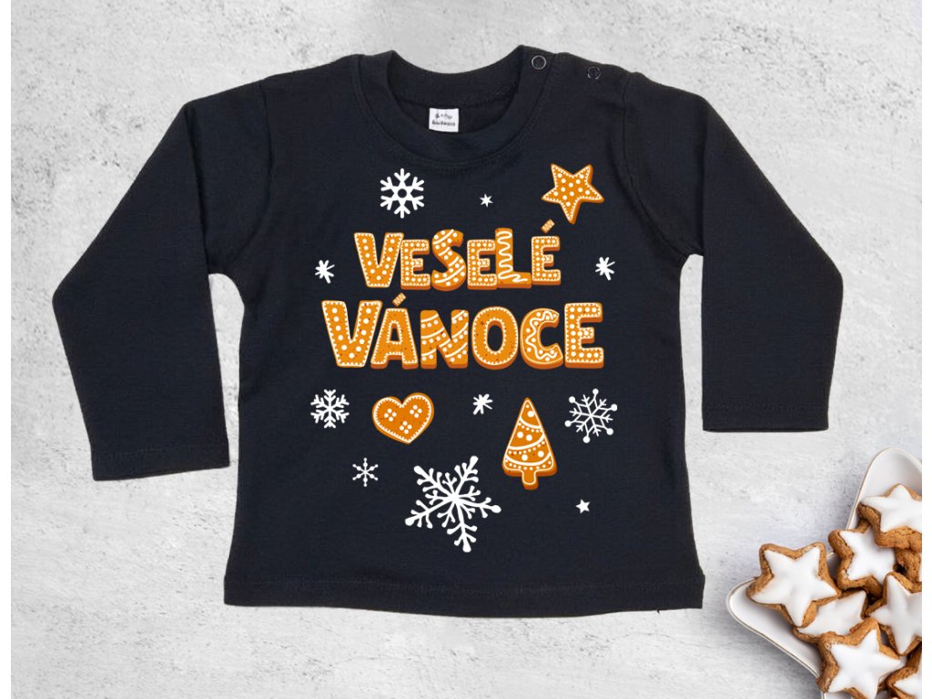 Perníčkový nápis - tričko černé BIO dlouhý rukáv 18-24 měs.