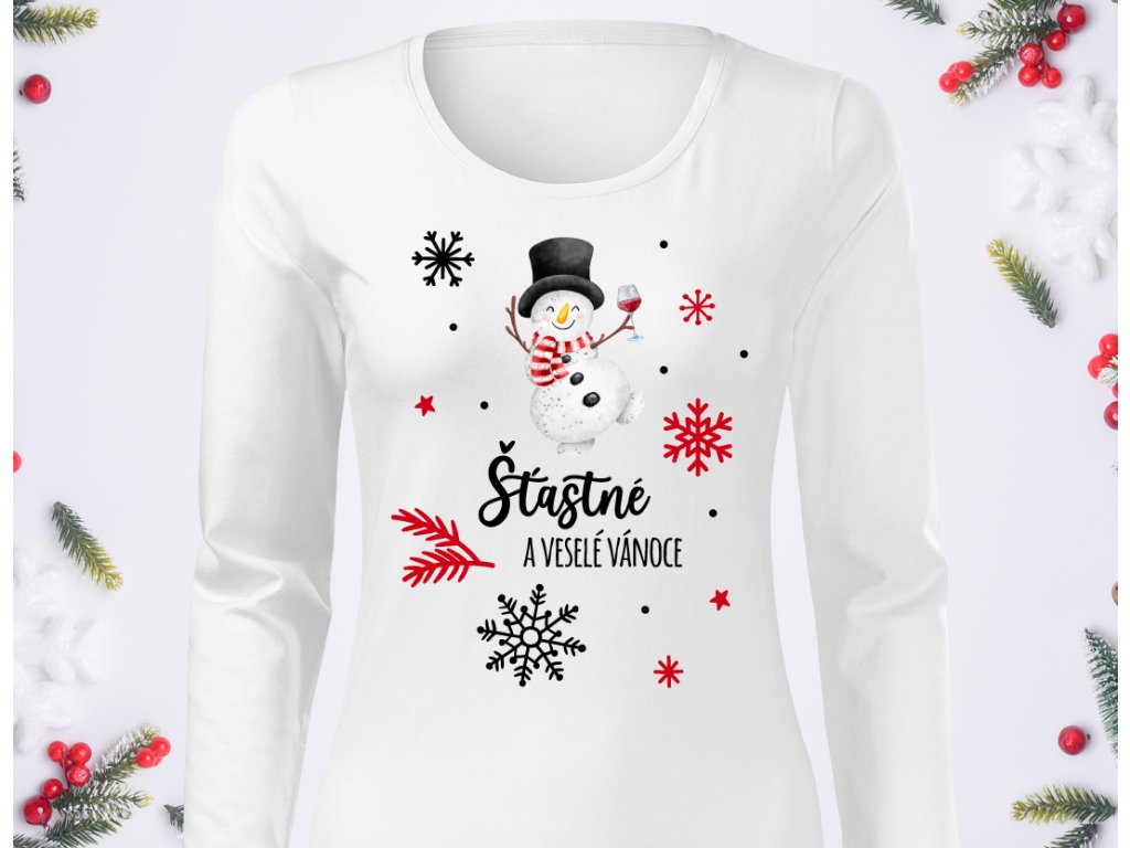 Roztančený sněhulák - Dámské triko bílé-DLOUHÝ RUKÁV