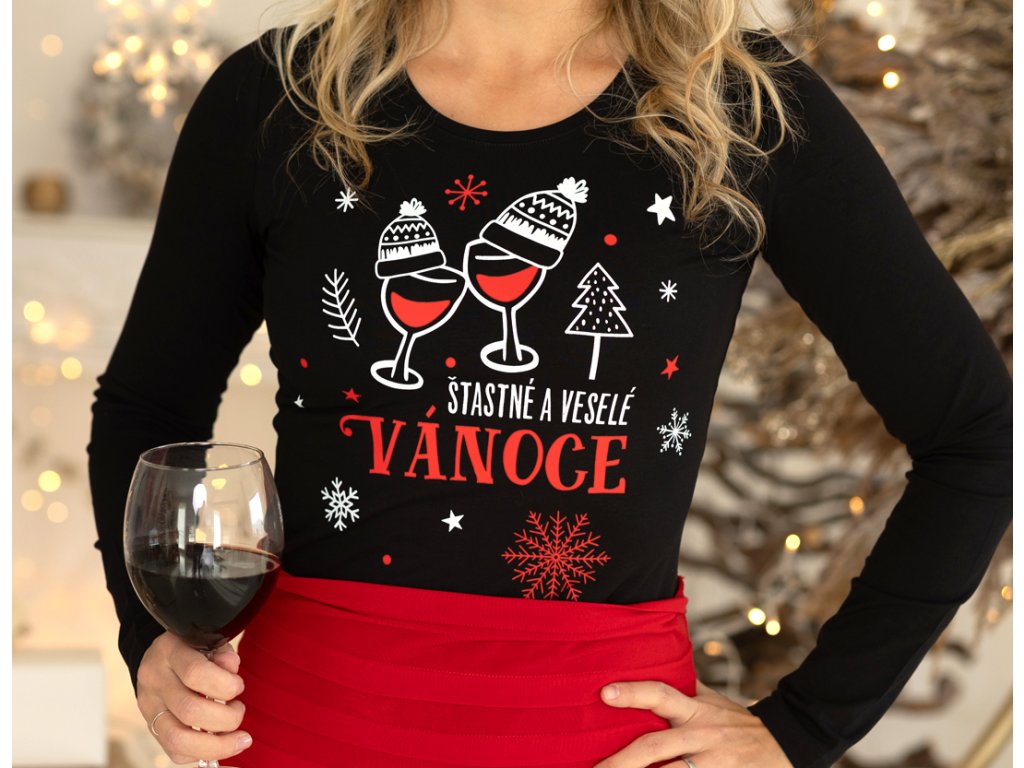 Skleničky - Dámské triko černé-DLOUHÝ RUKÁV