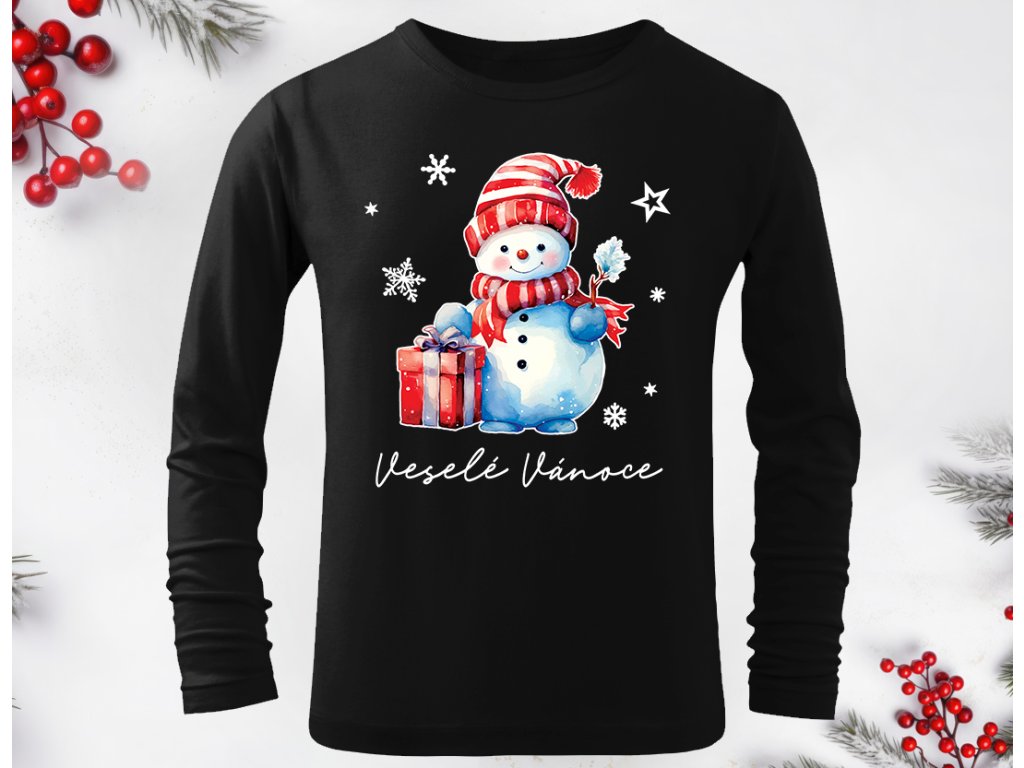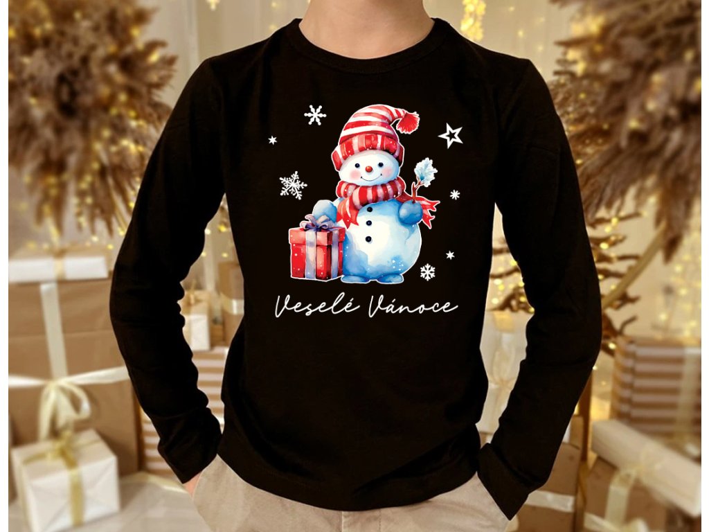 Vánoční tričko se sněhulákem, dlouhý rukáv.