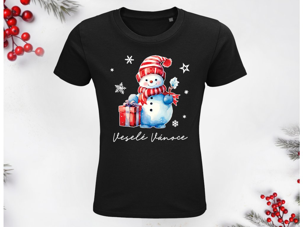 Sněhulák se šálou - Dětské triko červené - DLOUHÝ RUKÁV
