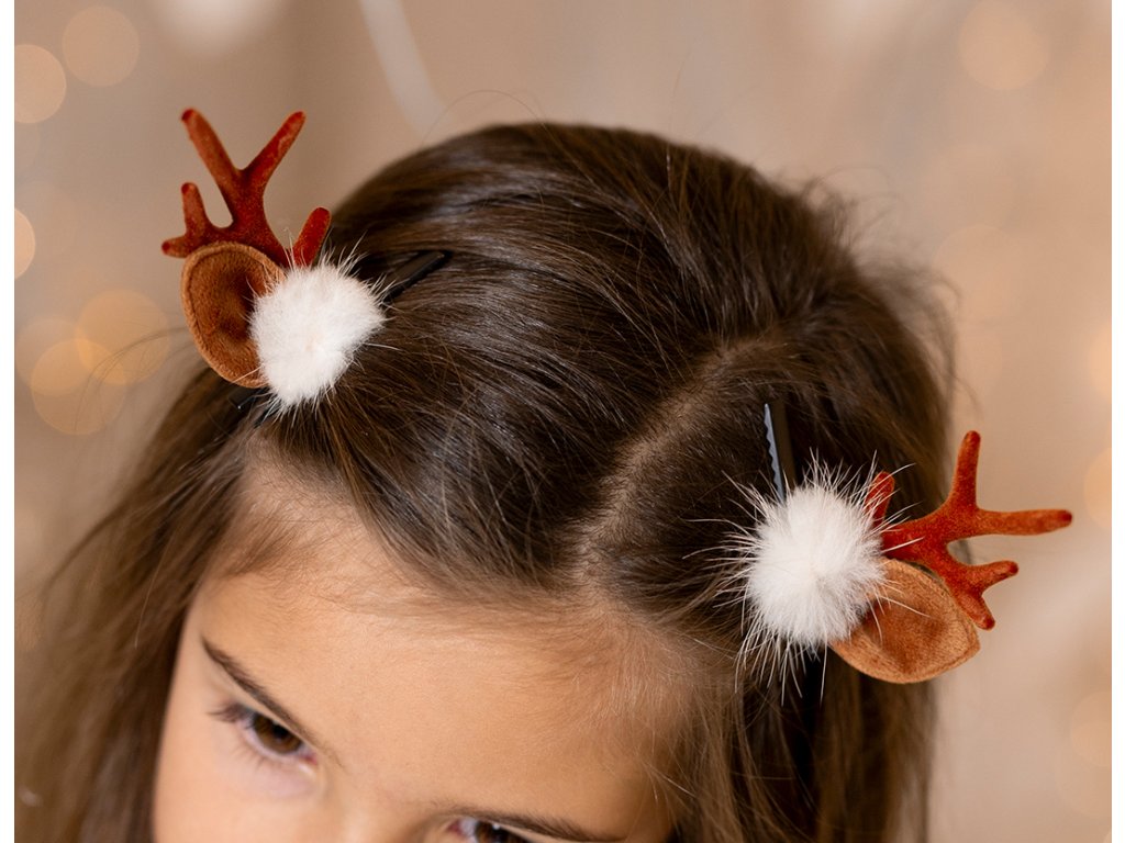 Sponky se sobími parůžky a oušky potěší malé i velké slečny. Ideální pro vánoční večírky, rodinné setkání a fotografování.